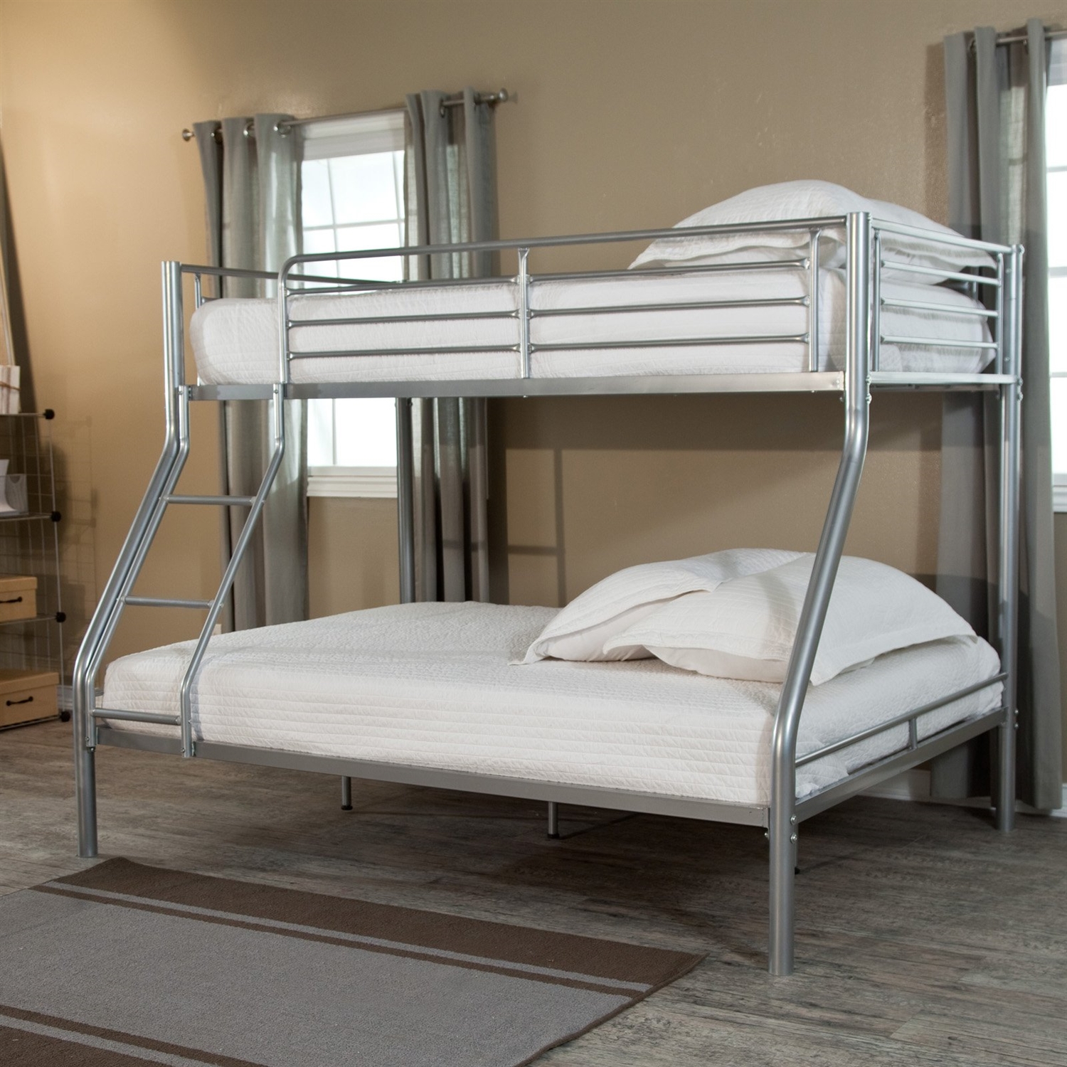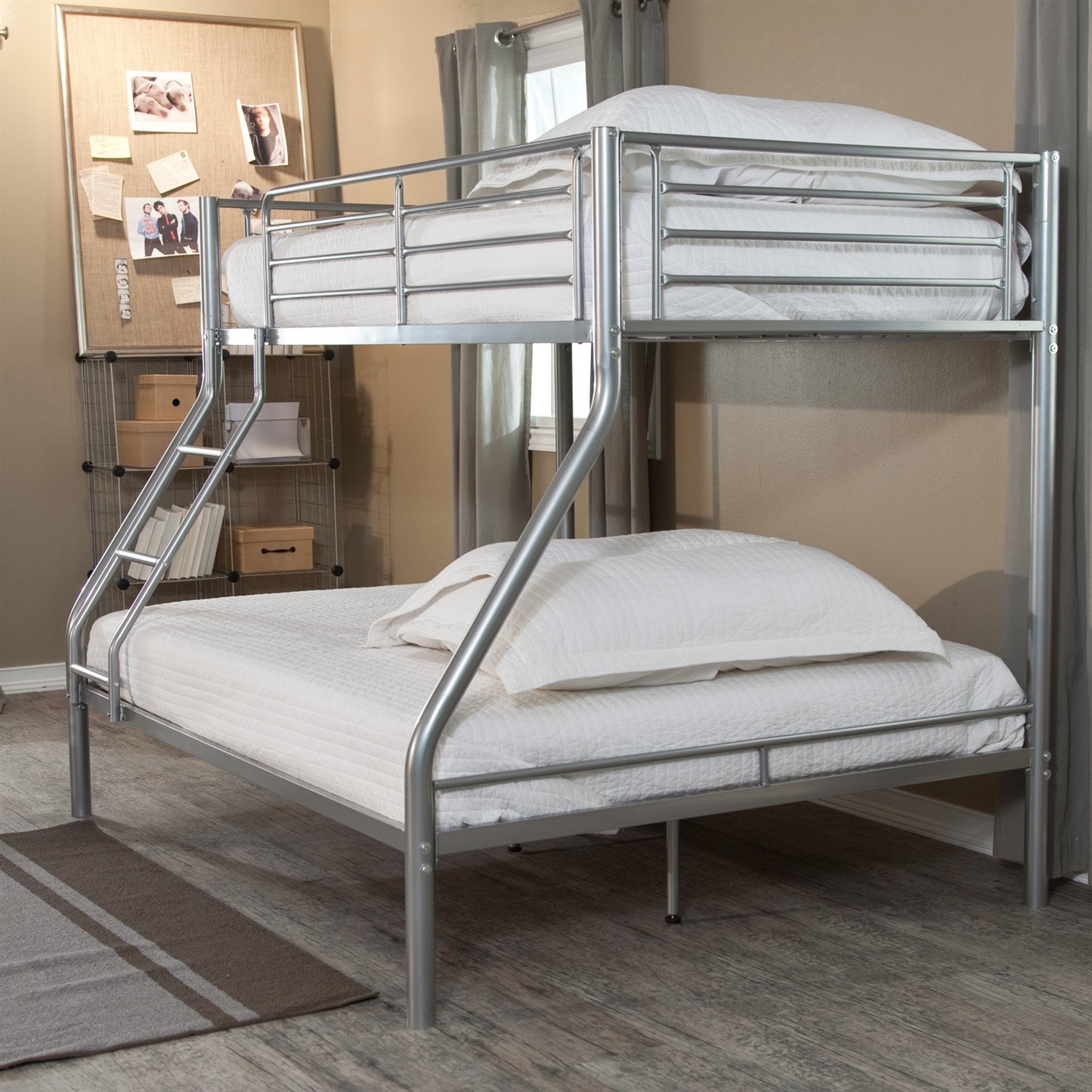 - Modern Twin over Full size Bunk Bed in Silver Metal Finish