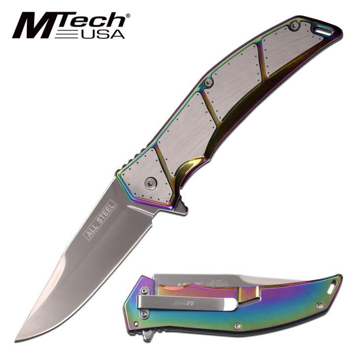 n· n8.75″ Overall· n3.75″ 3cr13 Steel Polished Blade· n5″ Tinite Coated Two Tone Stainless Steel Handlennnnnnnn· nFrame Lock· nIncludes Pocket Clip