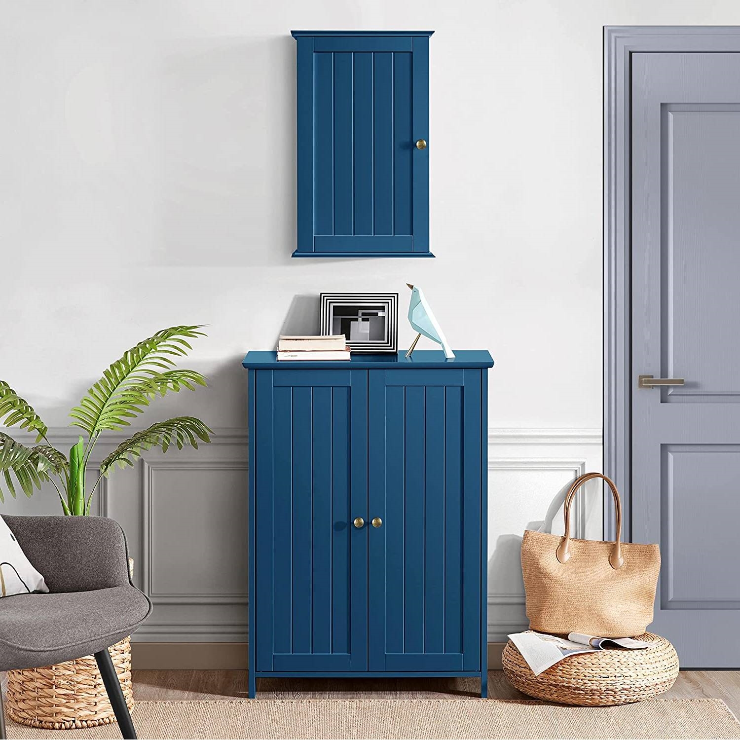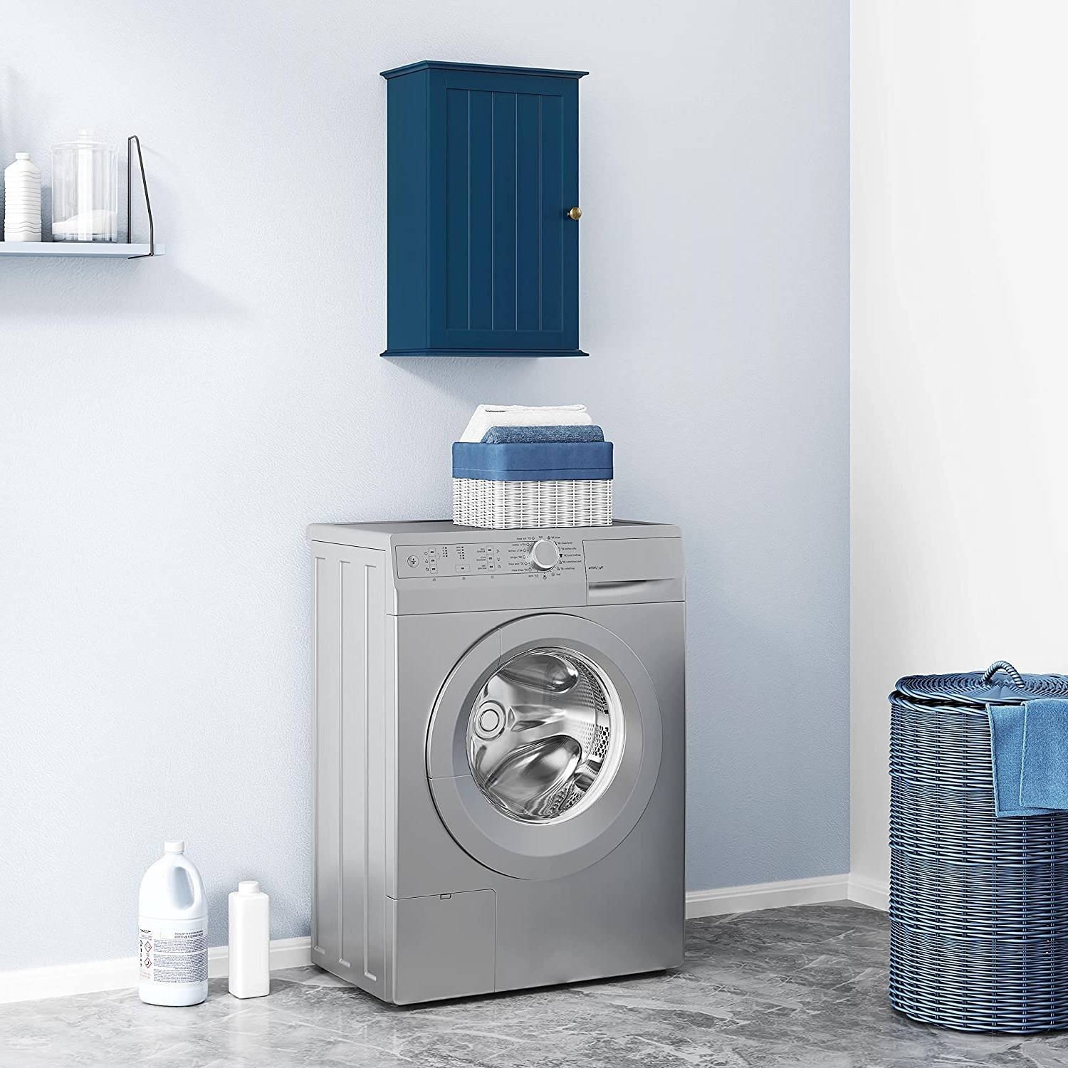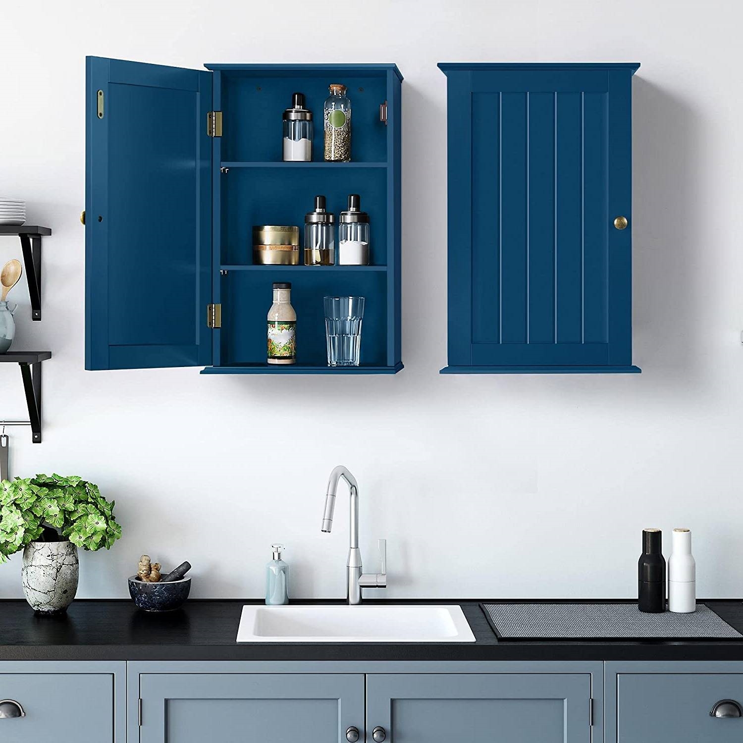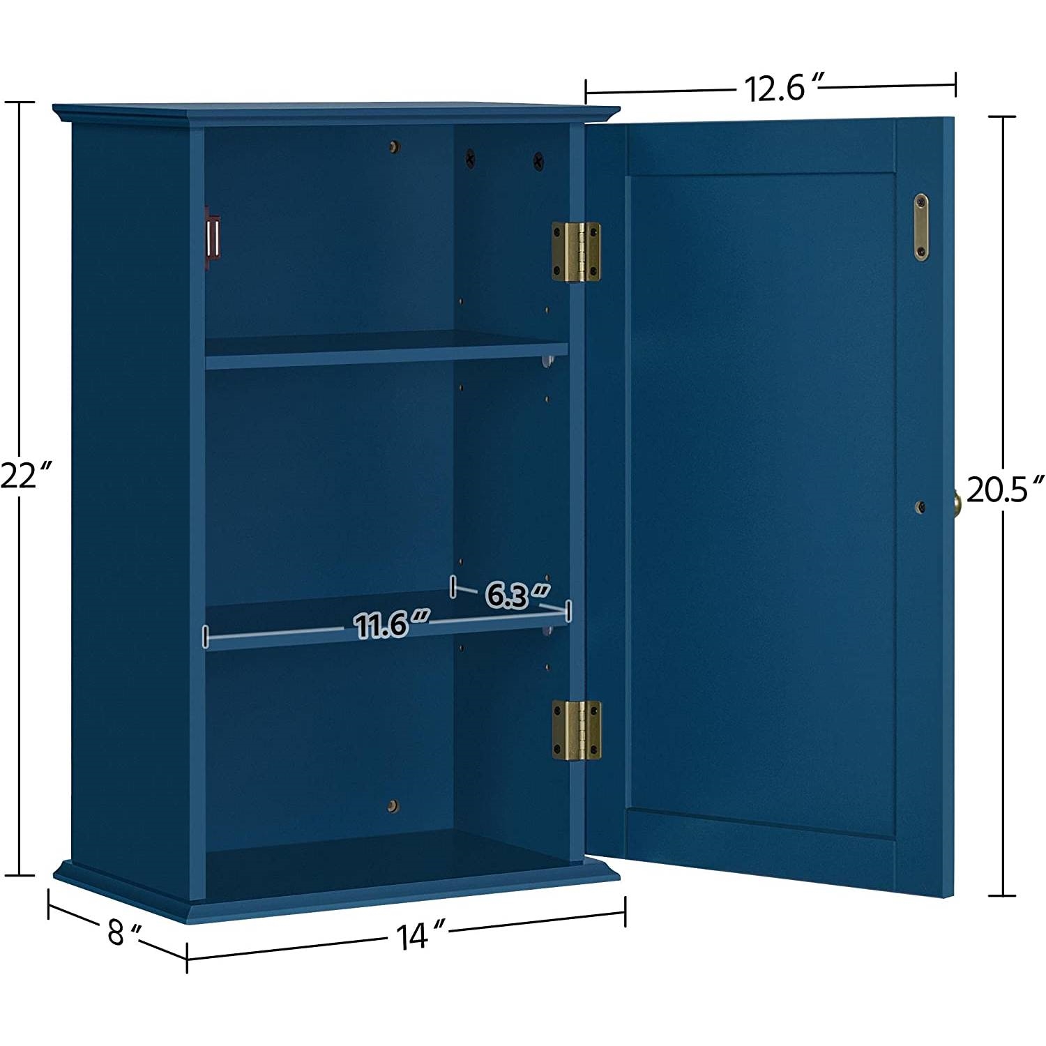 - Navy Blue 1-Door Wall Mounted Bathroom Medicine Cabinet Storage Cupboard