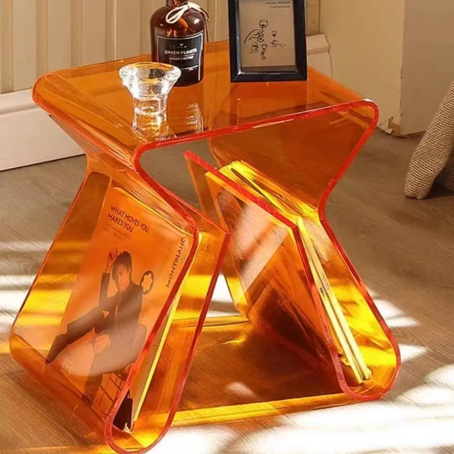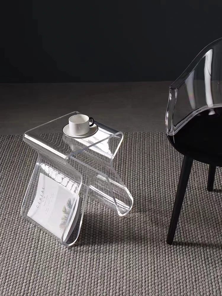 Acrylic bookshelf magazine rack multi-functional stool transparent European-style small coffee table table side table