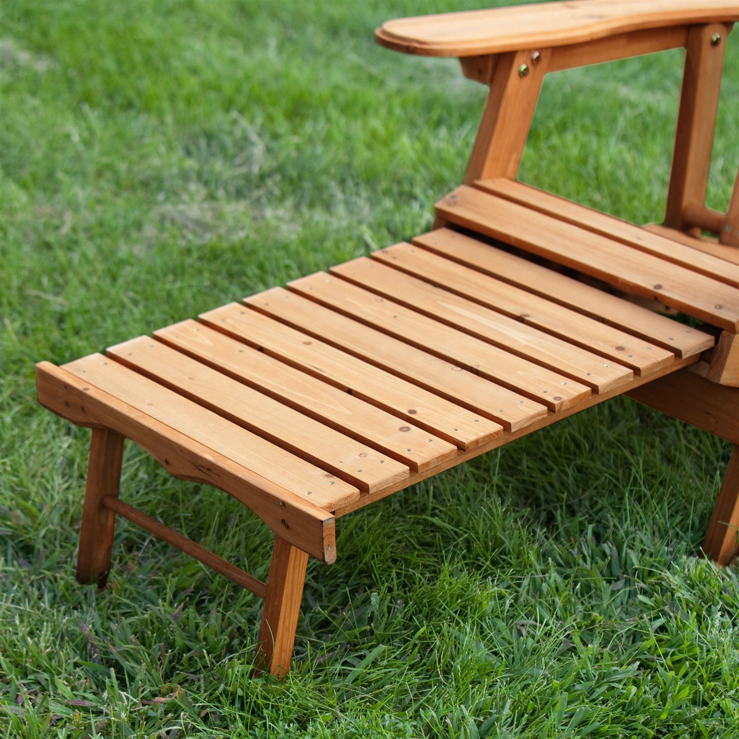 - Outdoor Adirondack Chair Recliner with Slide-Out Ottoman in Kiln-Dried Fir Wood