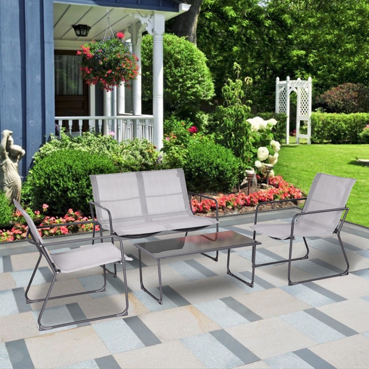 Outdoor Black Steel Frame 4-Piece Patio Furniture Set
