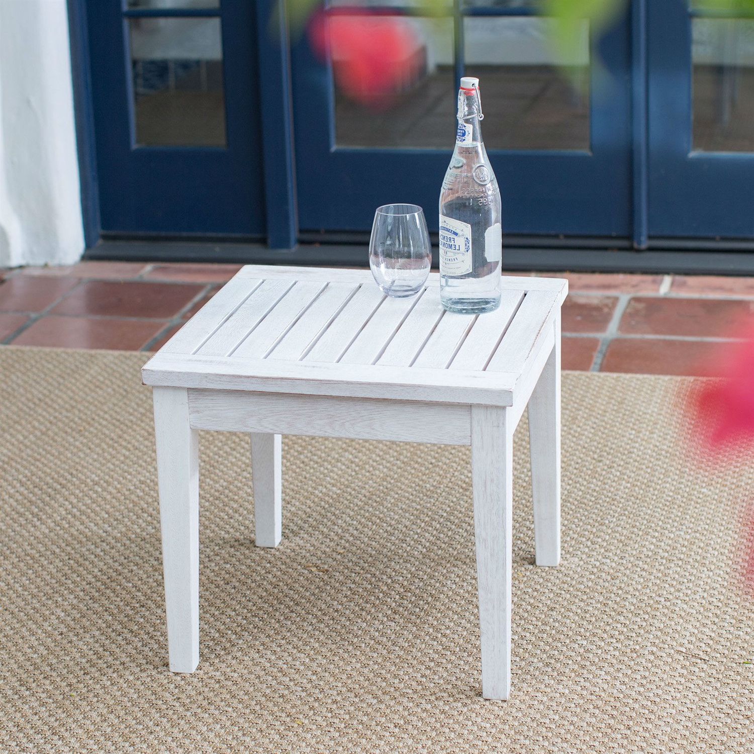 The most useful of sidekicks, this Outdoor Garden Deck Patio Side Table in White Wood Finish keeps your drinks, plates, books, and other accessories right where you need them while you enjoy the great outdoors. This handy side table is made from FSC- (Forest Stewardship Council) certified sustainable eucalyptus wood and comes in a crisp white finish. The classic slat design matches other Brighton Beach pieces and will provide your outdoor space with timeless style for years to come. Complete a Brighton Beach set or mix-and-match, just definitely bring this table to the party!