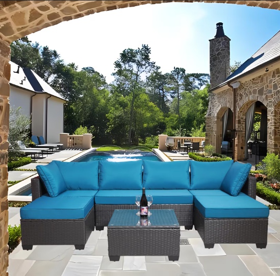 Product Name: Outdoor Garden Patio Furniture 7 Piece PE Rattan Upholstered Sofa Set & Coffee Table, Patio Furniture Set; outdoor sofas; outdoor sofas, patio furniture; outdoor sofas; Terrace sofa