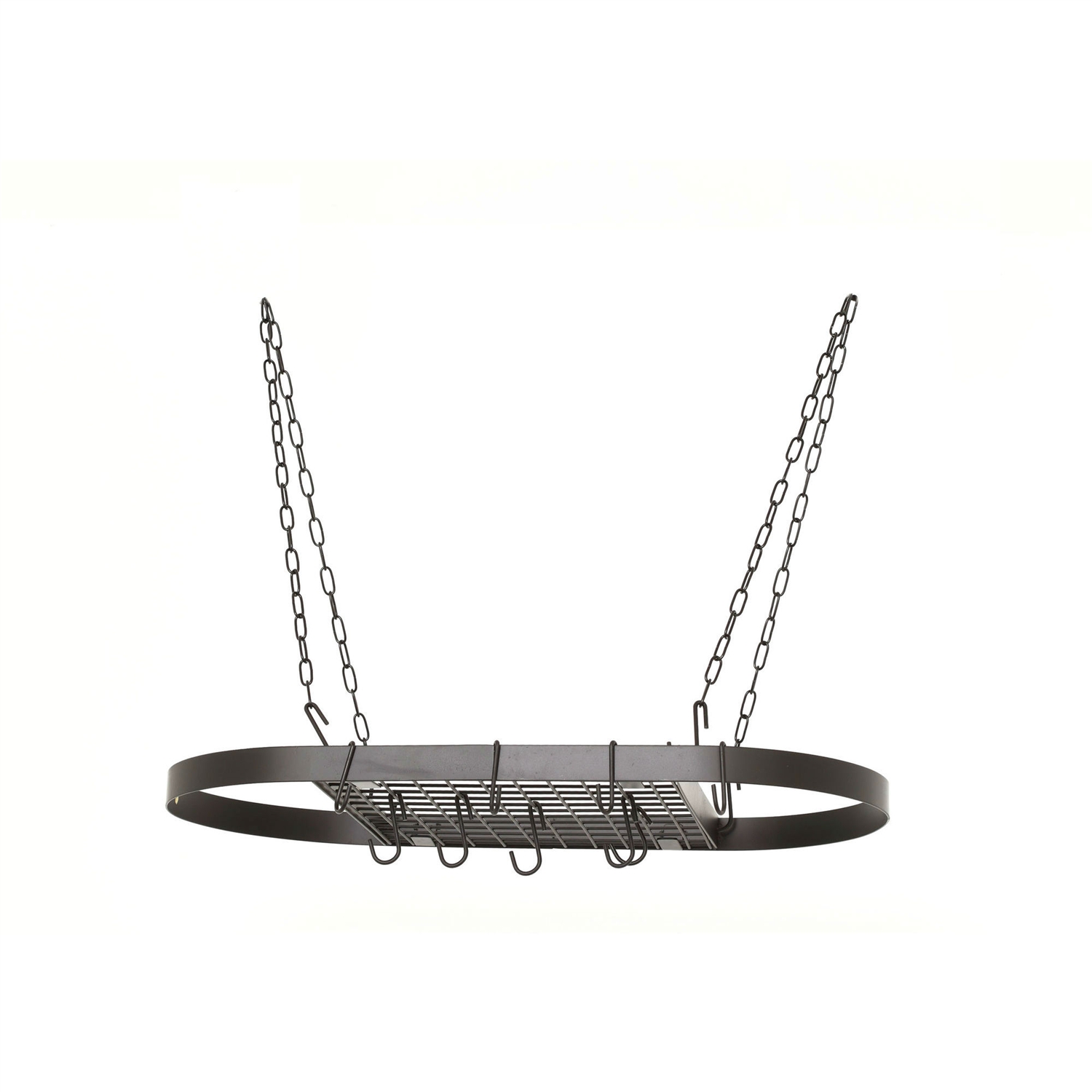 Oval, Hanging, Pot Rack, Chains, 2 Hooks, Matte Black