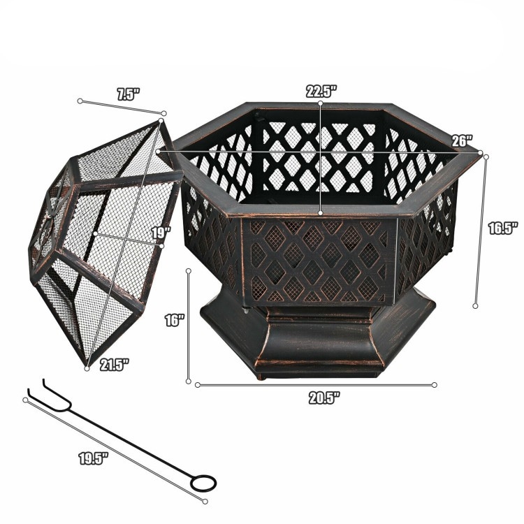 Portable Hex Shaped Wood Burning Fire Pit with Cover and Poker