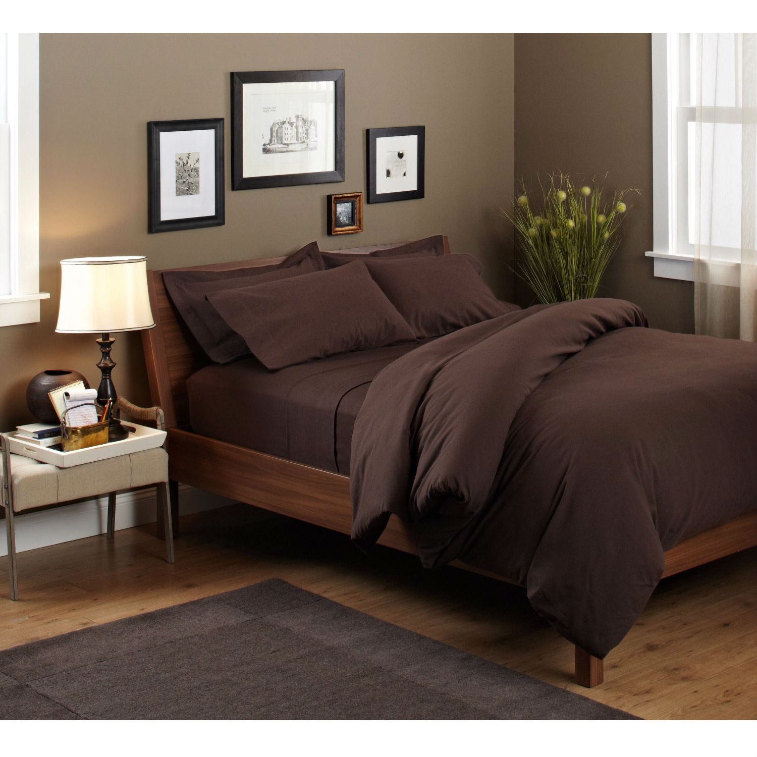 - Queen 100-Percent Cotton Flannel Sheet Set in Brown Italian Roast