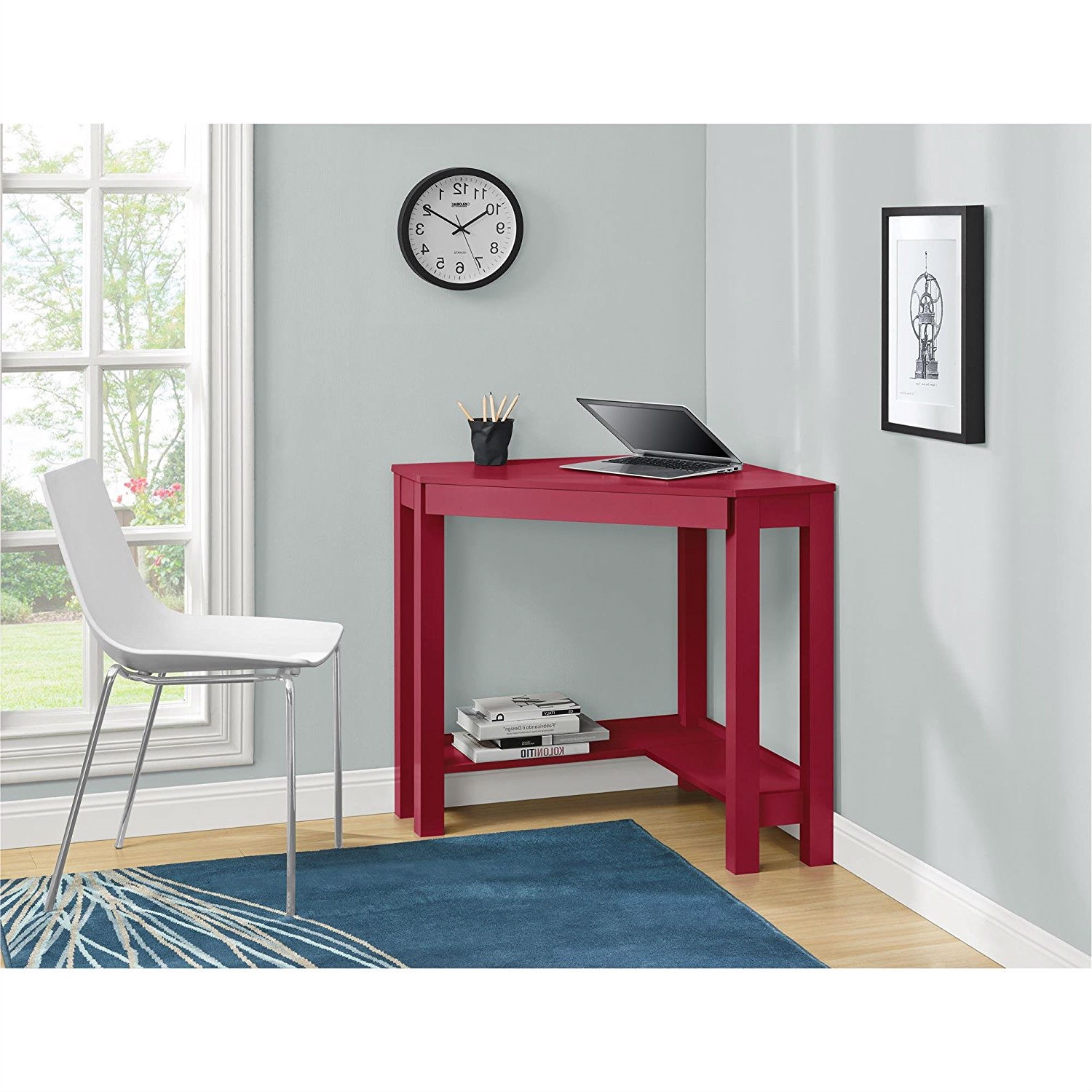Red, Corner, Writing, Laptop Desk, Drawer, Great for, Small Spaces