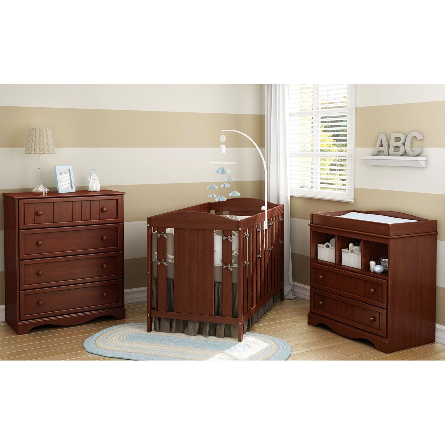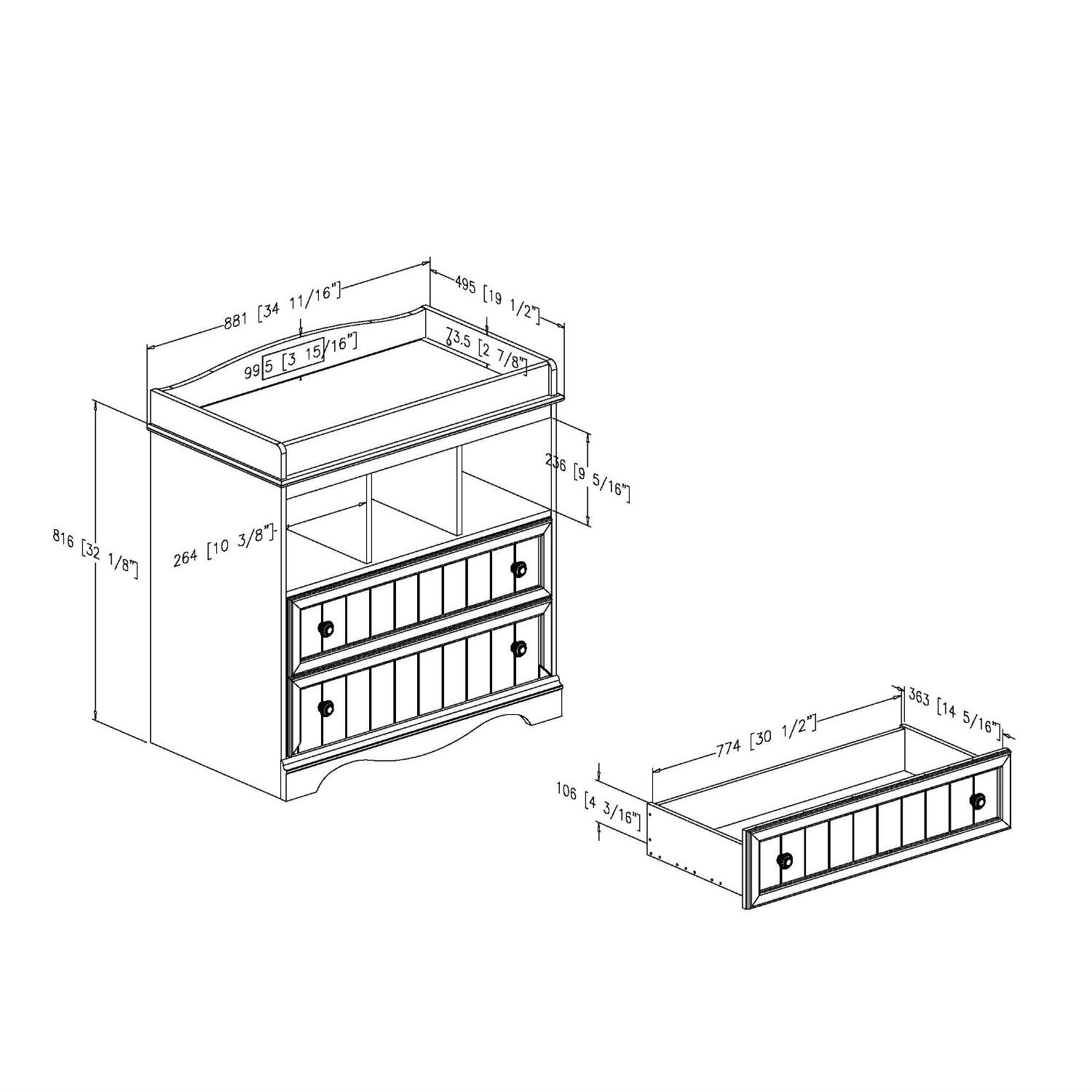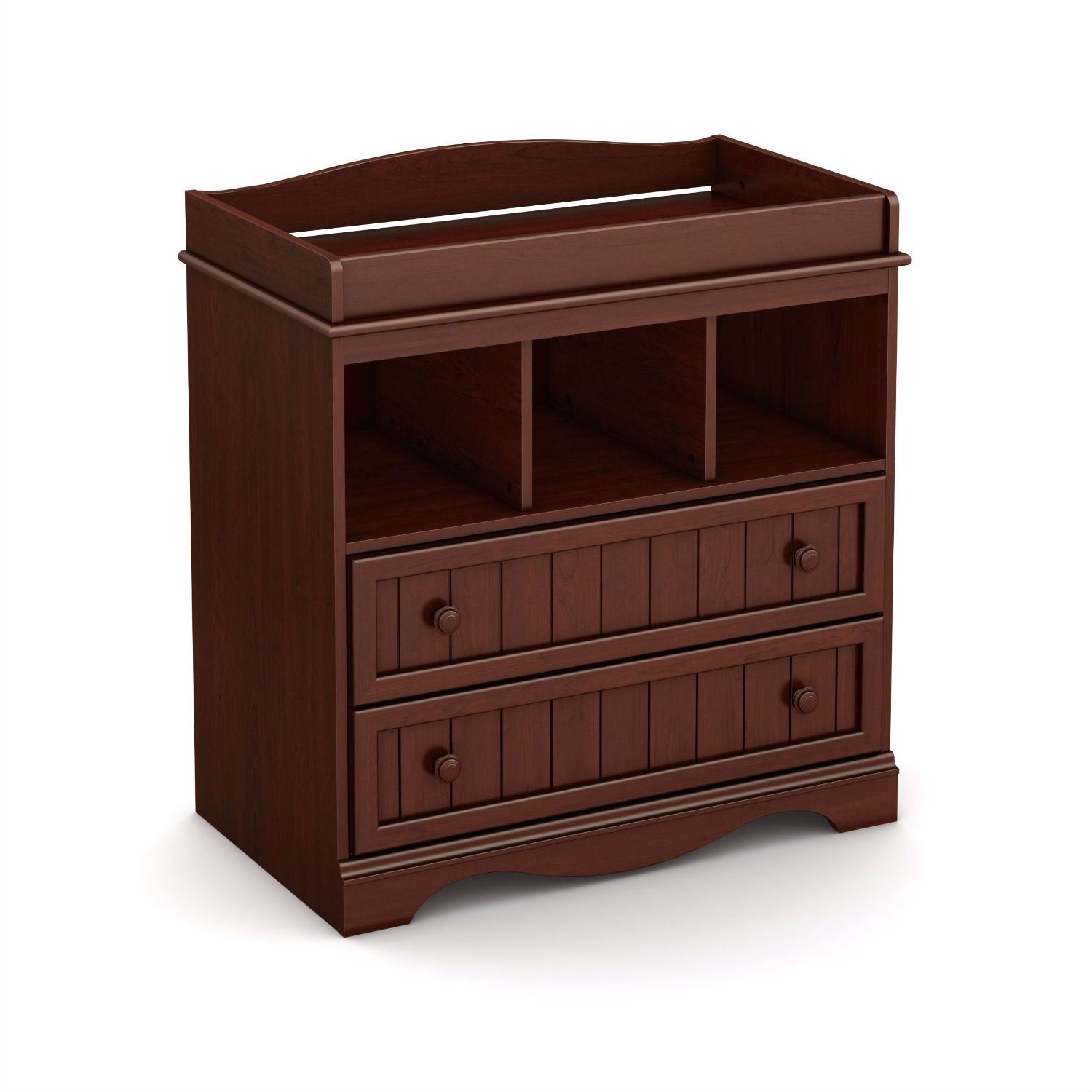 This Royal Cherry Wood Baby Diaper Changing Table with 2 Drawers offers you country-style changing table in a Pure White finish. It features rounded safety corners for your baby’s safety and comfort. Two practical drawers and three open storage compartments keep everything you need to care for your little one within easy reach. Interior drawer dimensions: 30-1/2-inch wide by 14-1/4-inch front to back. This product is manufactured in compliance with consumer health and safety laws and ASTM standard F2057. The glides are made of polymer and include dampers and catches, creating a secure environment for little ones. Measures 35-inch wide by 20-inch deep by 37-inch high. It is delivered in one box measuring 40-1/4-inch by 23-1/4-inch by 7-1/4-inch and weighing 93-pounds. This product has been designed to match most Pure White finish cribs on the market today. Also available in a Espresso finish. The back surface is not laminated. The changing pad and accessories are not included. Manufactured from certified Environmentally Preferred laminated particle panels. Complete assembly required by 2 adults. Tools are not included. 5-year limited warranty. Made in Canada.