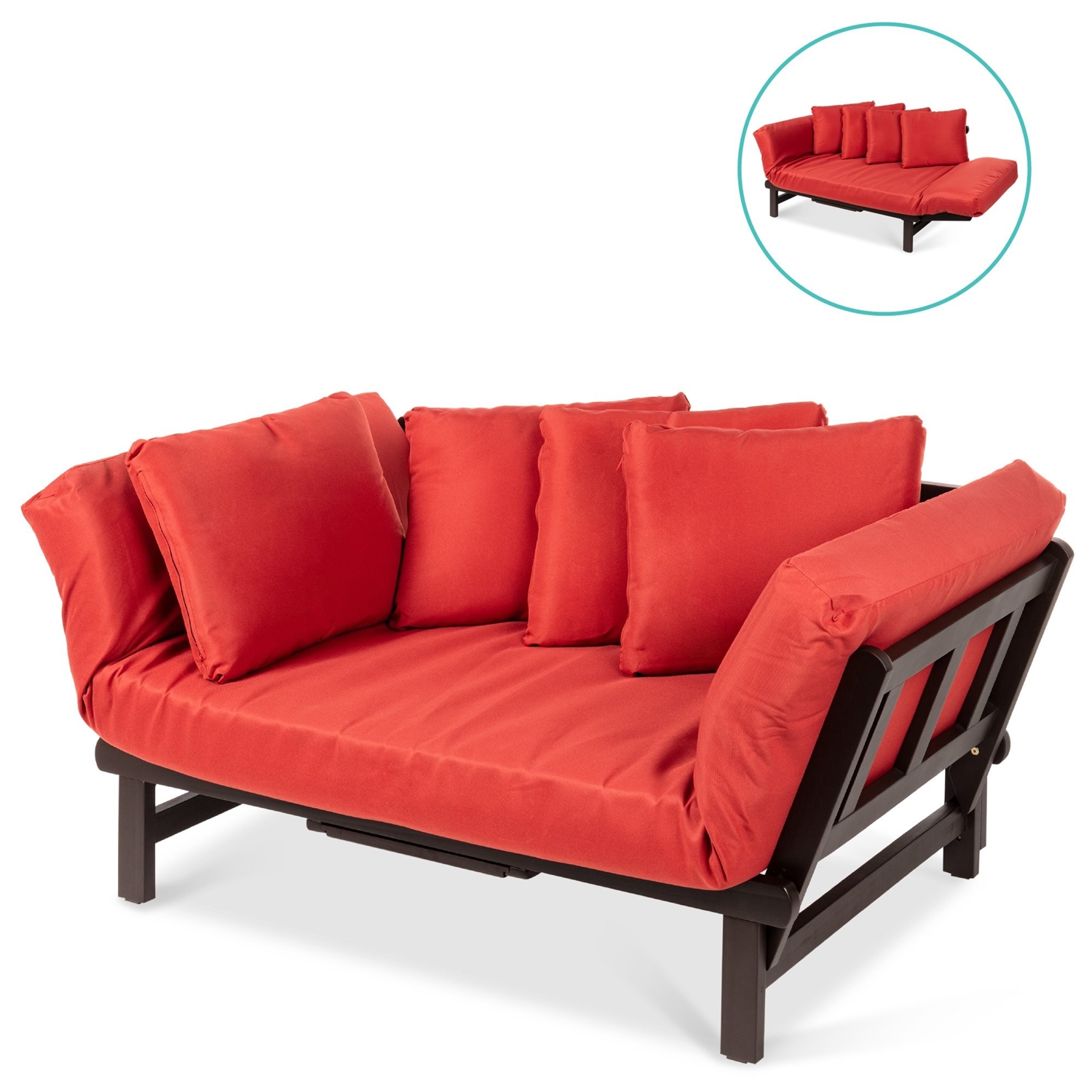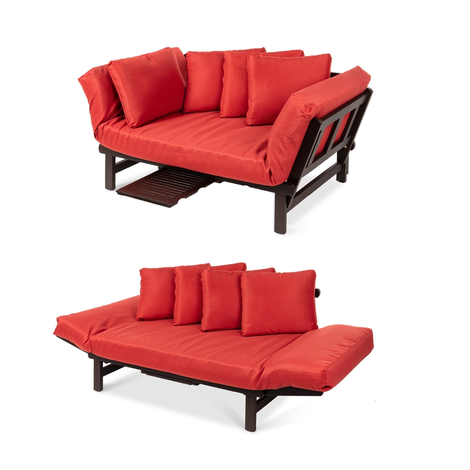 Rustic, Red , Outdoor, Acacia, Wood, Convertible, Sofa, Futon, Removable, Pillows