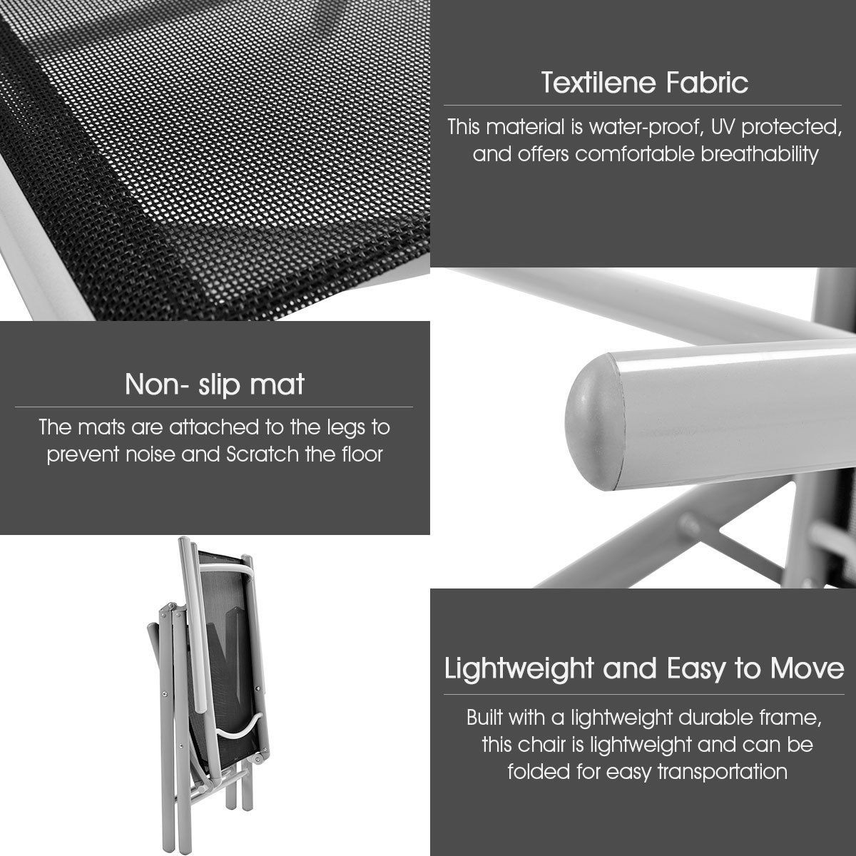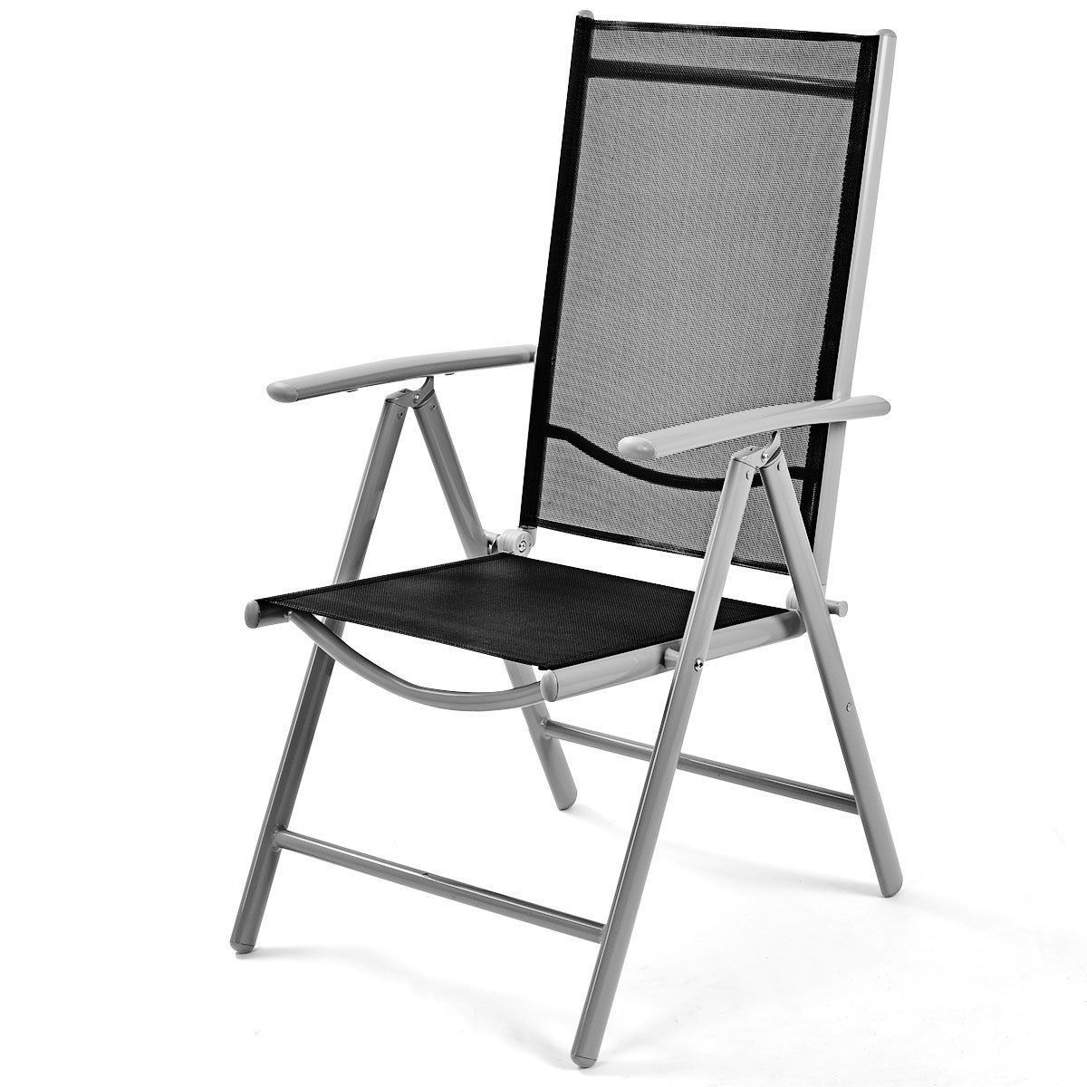 - Set of 2 Folding Outdoor Patio Chairs with Black Mesh Seat and Grey Metal Frame