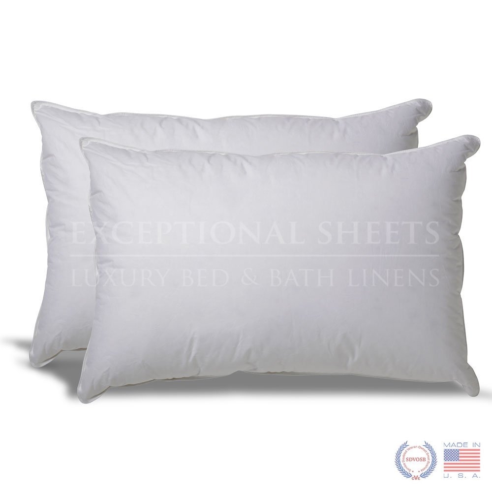 This Set of 2 Hypoallergenic Down Alternative Pillows with 100% Cotton Ticking comes in a 200-thread count, 100% cotton ticking, filled with a hollow, siliconized, polyester cluster fiber. The pillows are non-allergenic, washable, and without exception, the finest pillows of this class anywhere! Most gold label pillows use a continuous filament fiber which flattens out quickly or becomes lumpy when washed. We use a much loftier cluster fiber to make this a soft but long-lasting pillow with an average lifetime of 3-5 years. Their lineup features Egyptian cotton bed sheets, duvet covers and pillow cases as well as other products like mattress toppers, goose down comforters, 5-star Egyptian cotton bath robes and towel sets. Exceptional Sheets mission is to provide customers with the highest quality Egyptian cotton sheet sets and bed linens in addition to top-notch customer service.