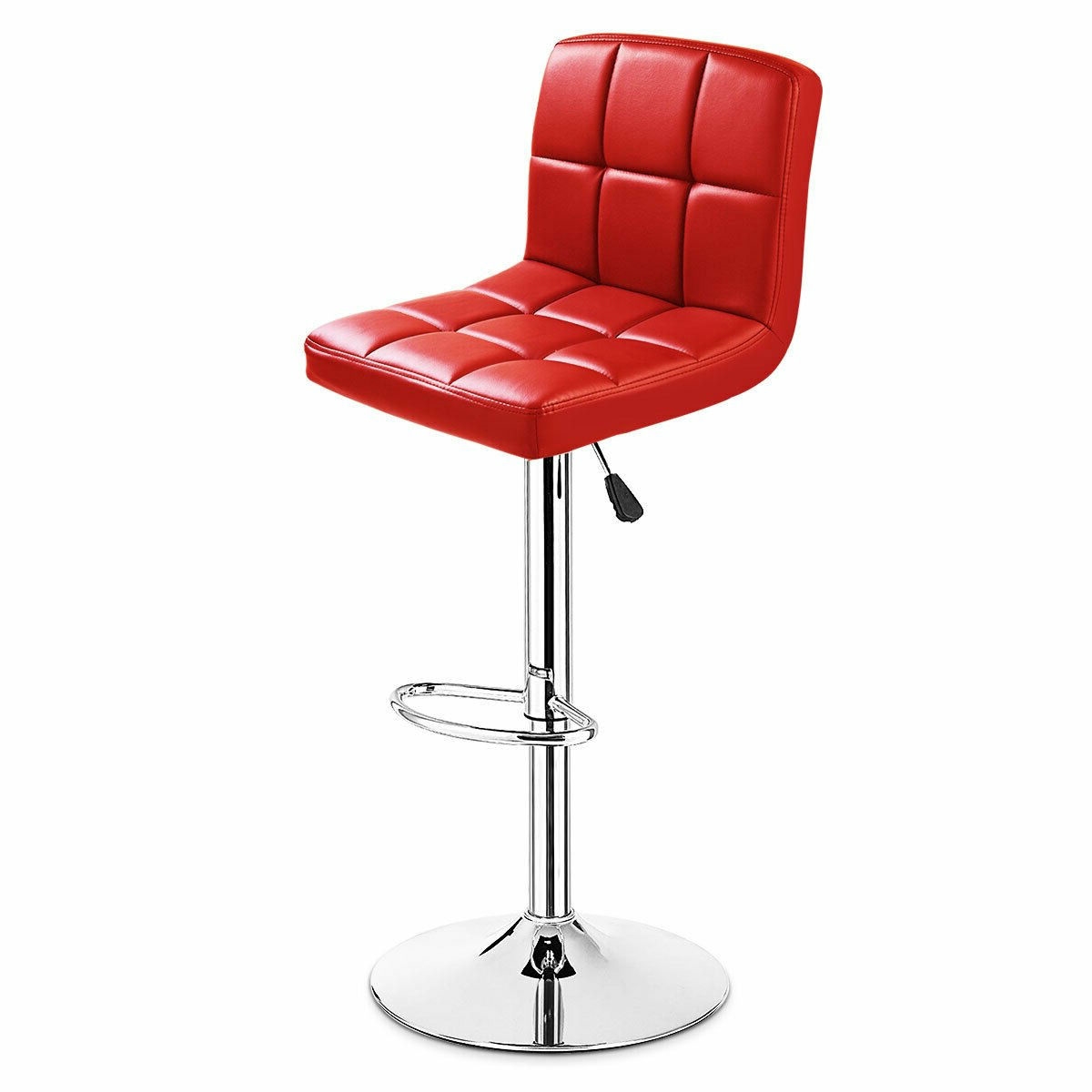 Set of 2, Red, Faux Leather, Swivel, Bar, Stools, Pub Chairs