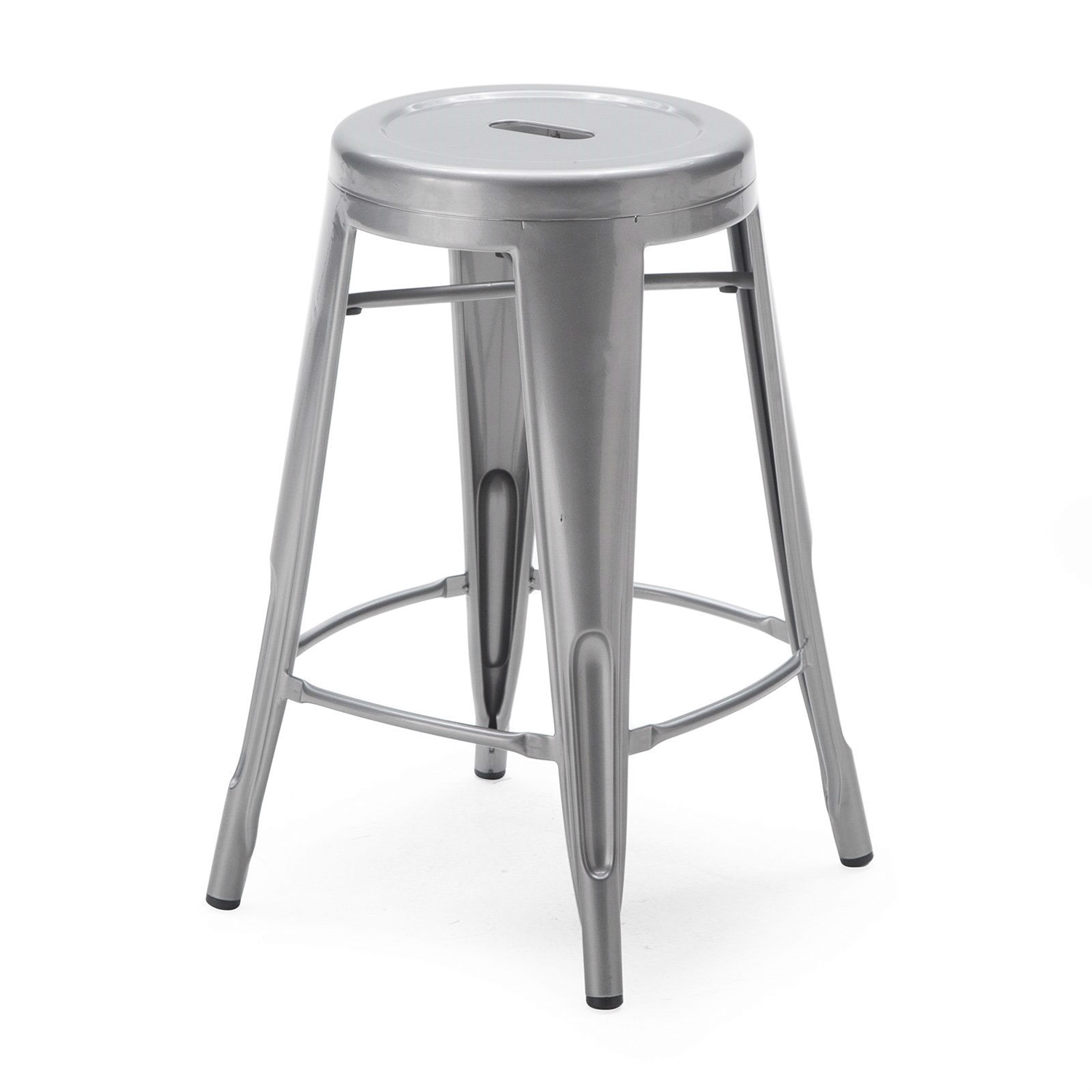 - Set of 2 Steel Metal 24-inch Counter Height Bar Stools in Powder Coat Silver Finish