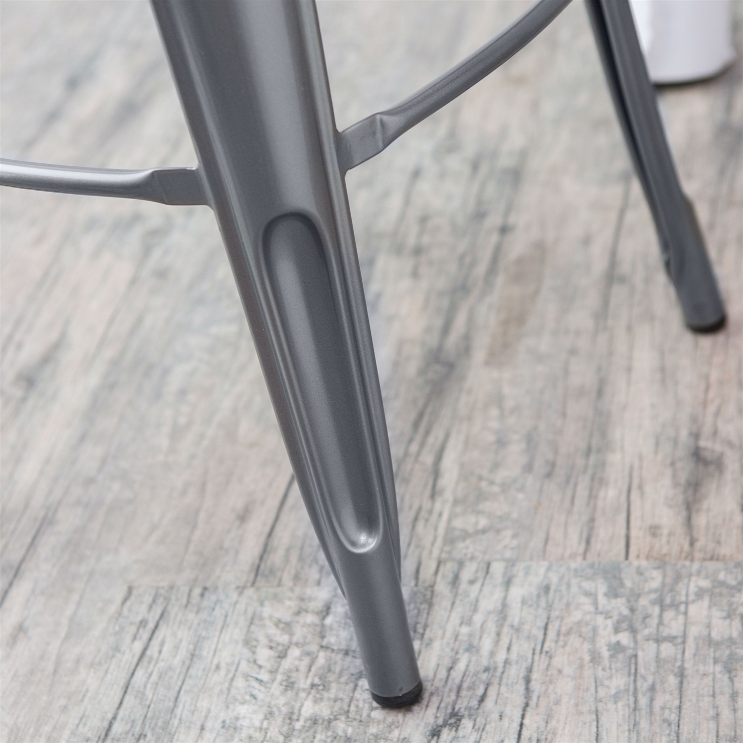 - Modern silver powder-coat finish