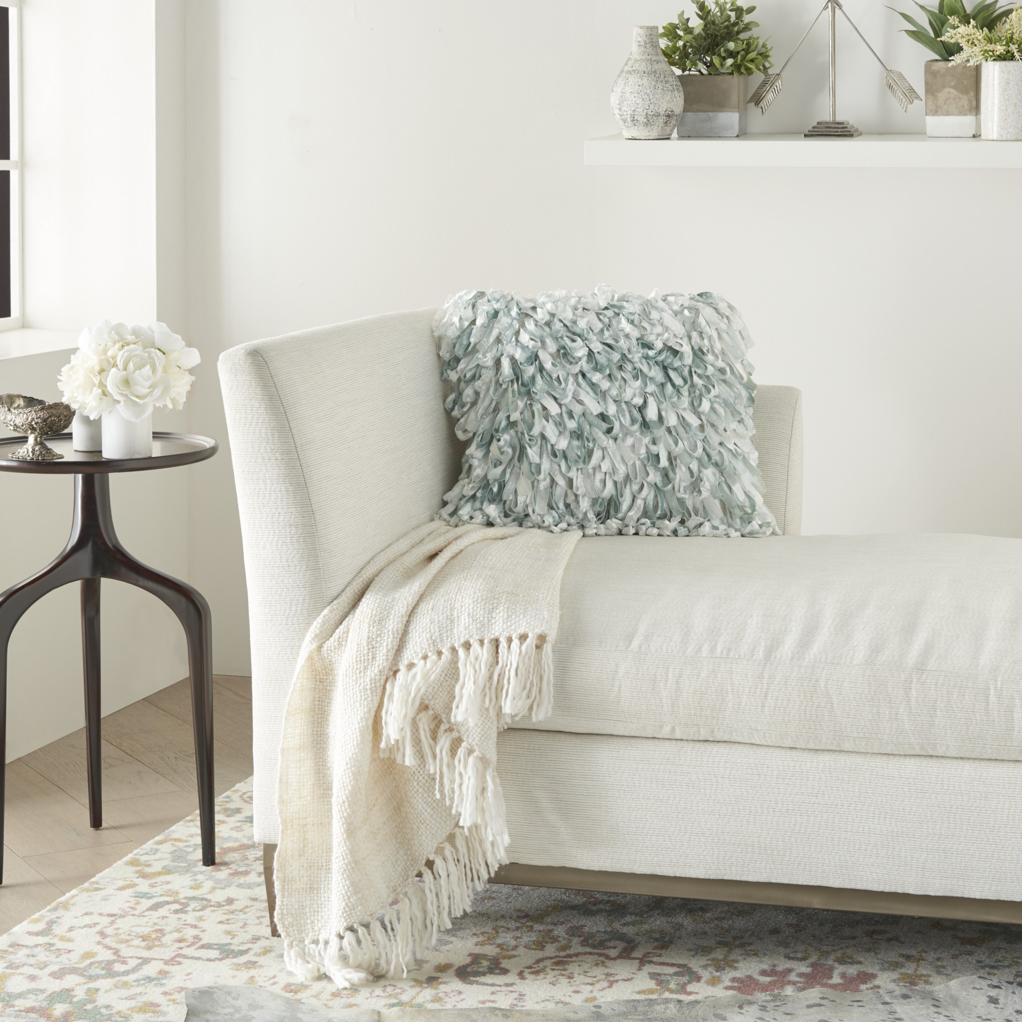 Shiny Light Blue Shaggy Throw Pillow