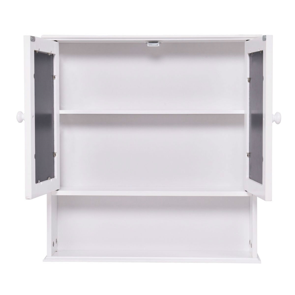 Simple Bathroom Mirror Wall Cabinet in White Wood Finish 23 x 22 inch Brand New And High Quality Wall-Mounted Design, Maximizing The Bathroom Space Made Of Engineered MDF, Sturdy And Durable Spray-Painted Process, Can Withstand a Humid Environment a Open Shelf And Two Storage Compartments With Two Mirror Doors, Offering Large Storage Space The Middle Shelf Of The Storage Compartments Is Movable, Three Selectable Heights Modern And Stylish, Perfect Storage Solution For Any Bathroom Or Kitchen Assemble Requirement Color Of Bathroom Cabinet: White Material Of Bathroom Cabinet: MDF Door Style Of Bathroom Cabinet: Double Framed Mirror Mounting Type Of Bathroom Cabinet: Surface Wall Mount Overall Dimension Of Bathroom Cabinet: 22″W x 5″D x 23″H