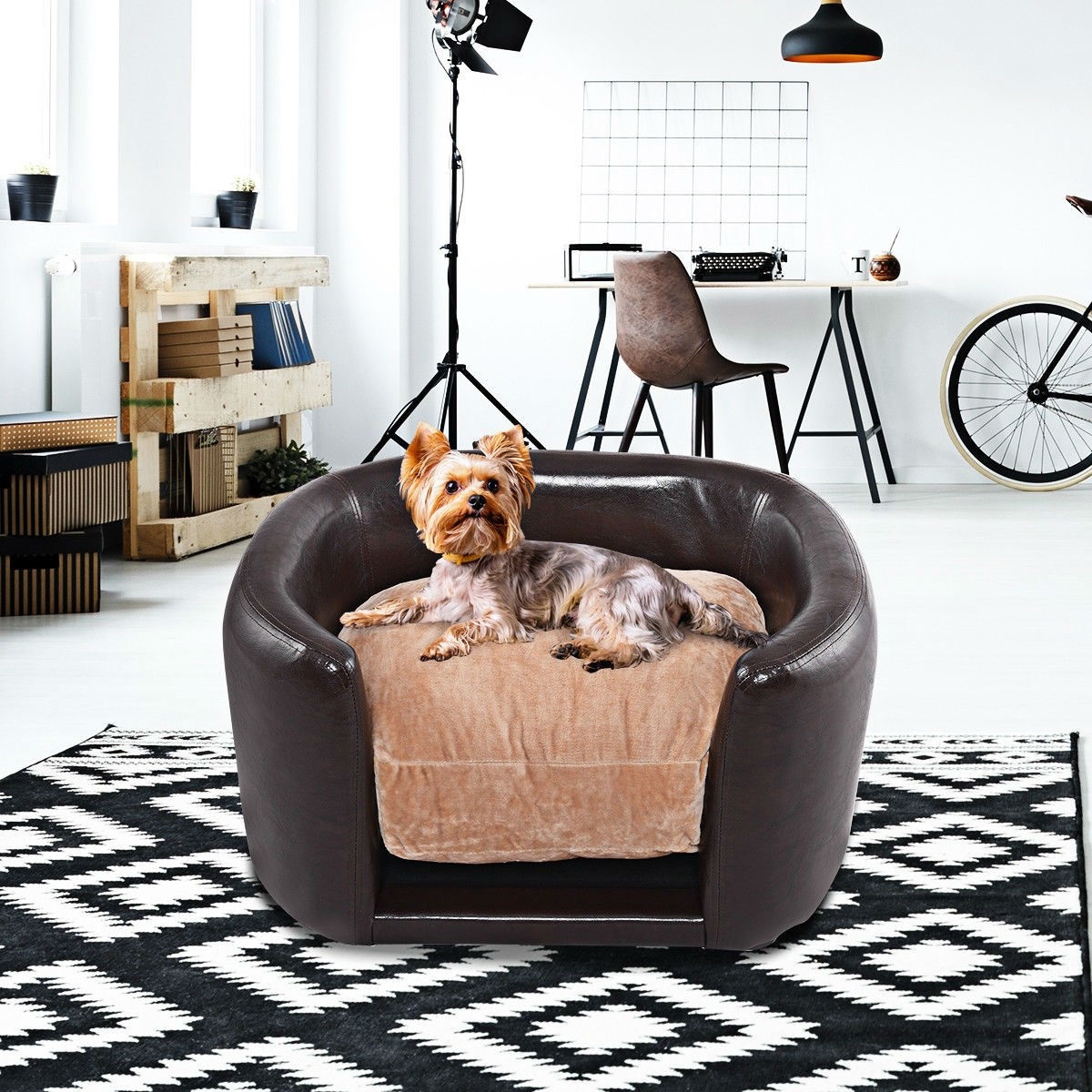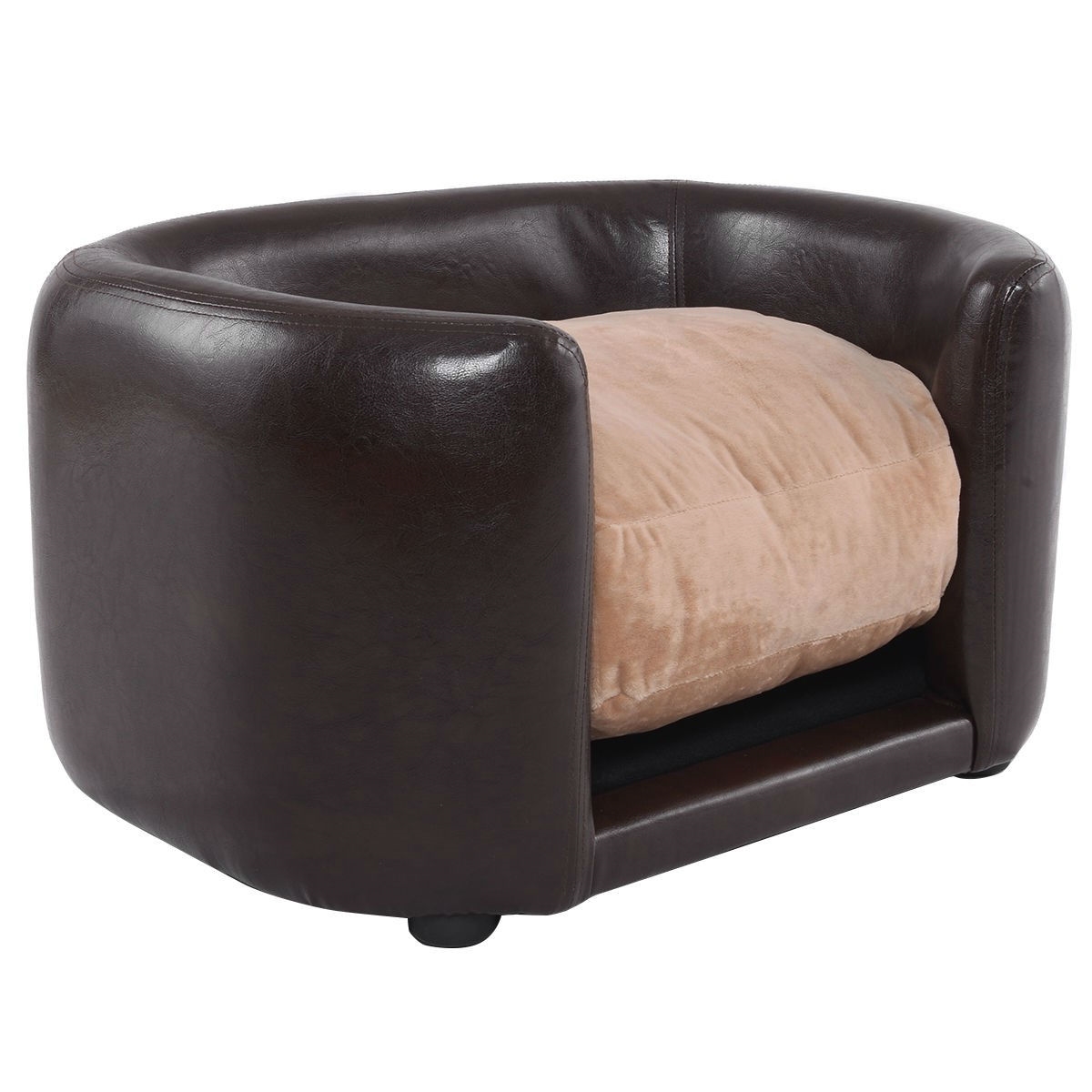 Soft Espresso Mini Couch Bed with Beige Cushion Small Dog or Cat