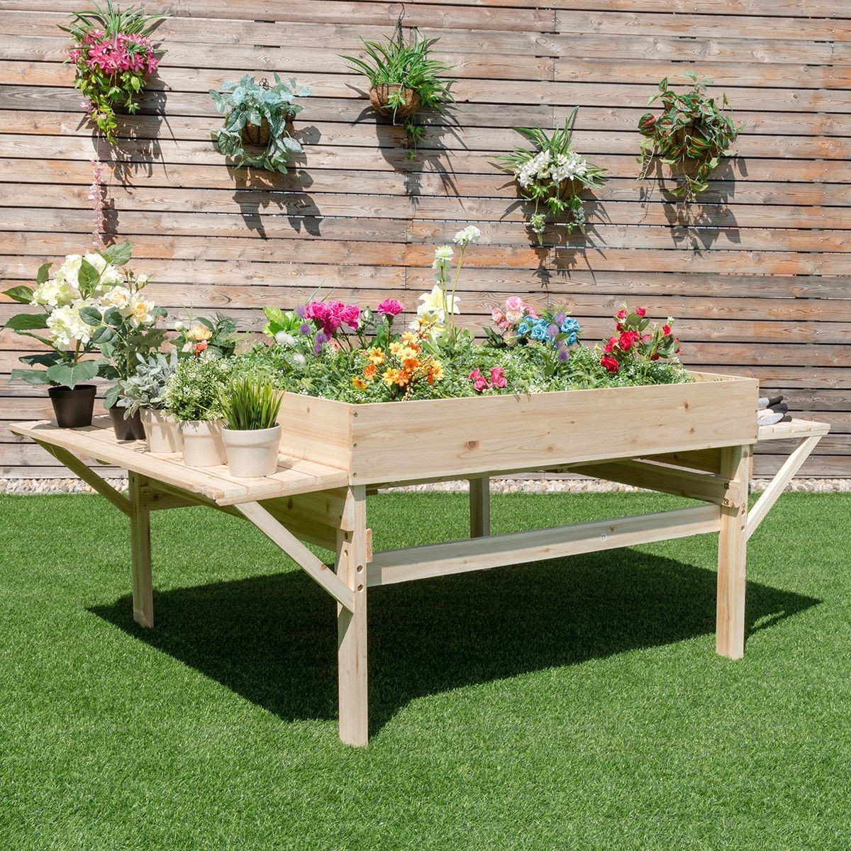 Solid Fir Wood Large 6 ft x 4 ft Elevated Garden Bed Planter Brand new and high quality Durable fir wood construction, is very sturdy and stable Cleaning is simple, just wipe with a damp cloth Both sides of the platform can be placed with sprinklers and planting tools Assembly requirement Color: As picture shows Material: Fir wood Package: 1 x Garden raised bed planter