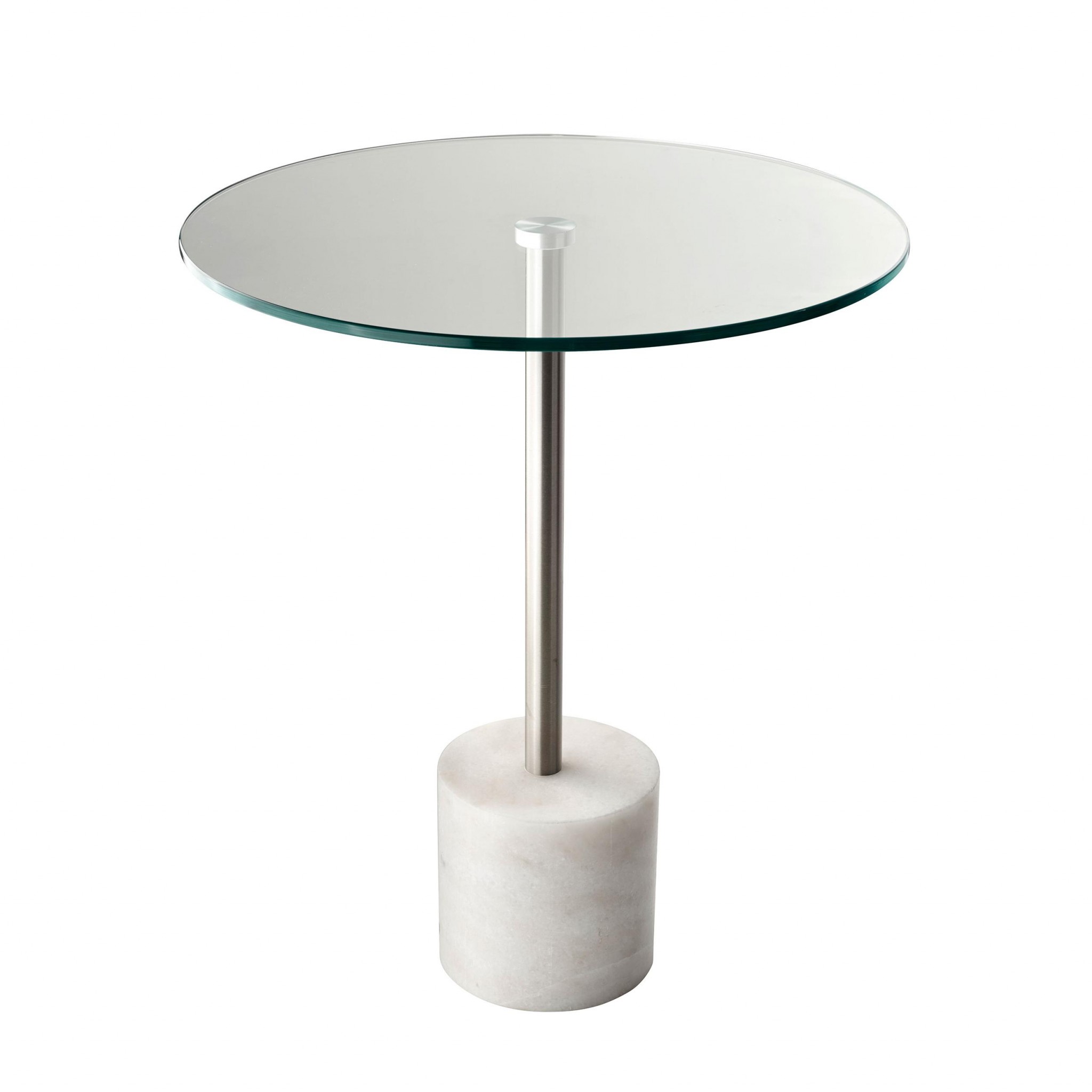 This Steel White Marble and Glass End or Side Table pairs a pedestal of sleek brushed steel with a chunky white marble barrel base for a sophisticated and contemporary look. The beauty of this end table lies in the simplicity of its design, as well as the delicate details of the marble grain. A crisp and clear glass table top finishes off the look with elegance, making this a quality addition to your living room, bedroom, or lounge area to hold your photos, remotes, lamps, and other light decorative accessories. 17.75″ X 17.75″ X 21″
