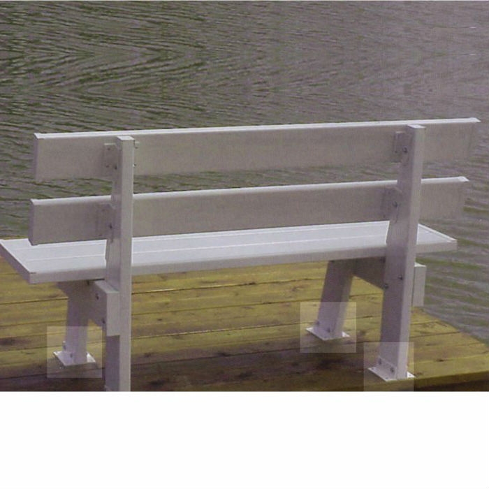The Sturdy Back Support White Vinyl Park Bench is constructed of 100% PVC vinyl and contains Titanium Dioxide to protect against harmful UV rays. This bench won’t fade, crack or peel. Because it’s made from vinyl, simply hose off to clean.