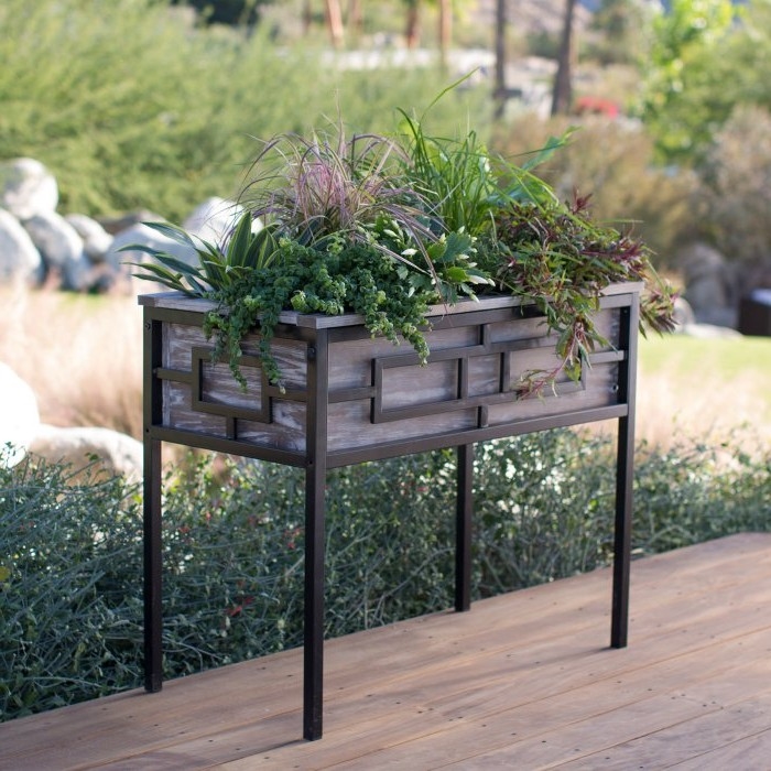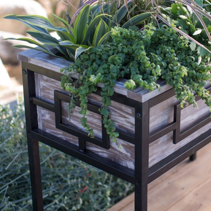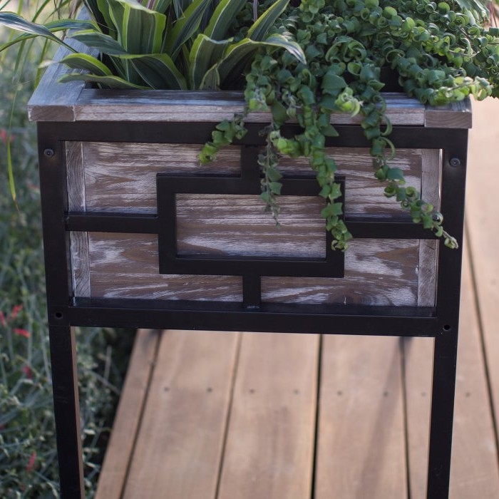 The Sturdy Wood and Metal Raised Planter 36L x 18W x 29.5H inches is just as attractive as it is durable. A light distressed Fir planter box is raised off the ground by a sturdy and decorative black metal frame, creating a look that will make a great addition wherever you place it. Its elongated rectangular shape gives you the perfect place to plant a row of your favorite plants. It’s contemporary enough to fit in with any décor but also interesting enough to stand out among other pieces.