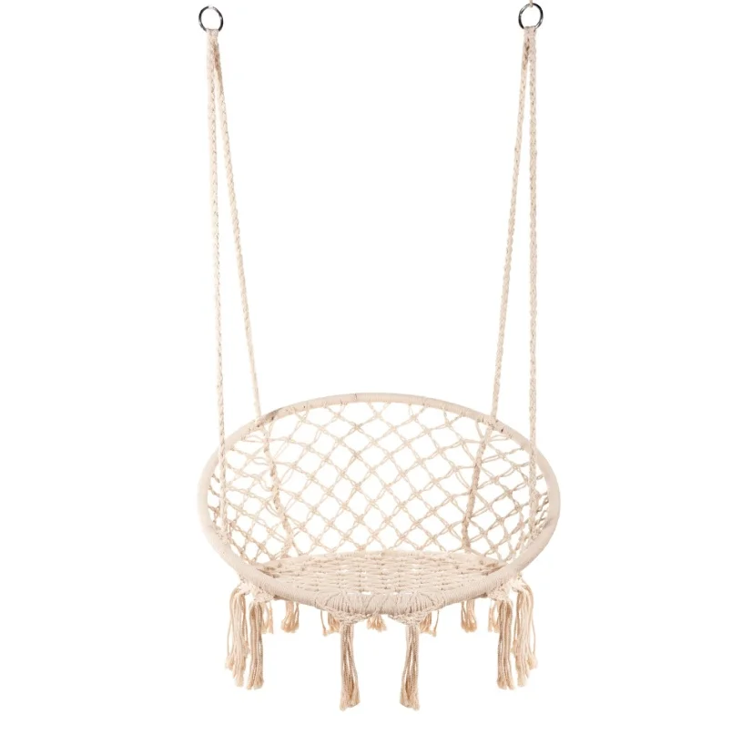 TOPIND Handmade Tassel Hanging Chair Cotton Rope Hammock Chair for Bedroom Patio Yard