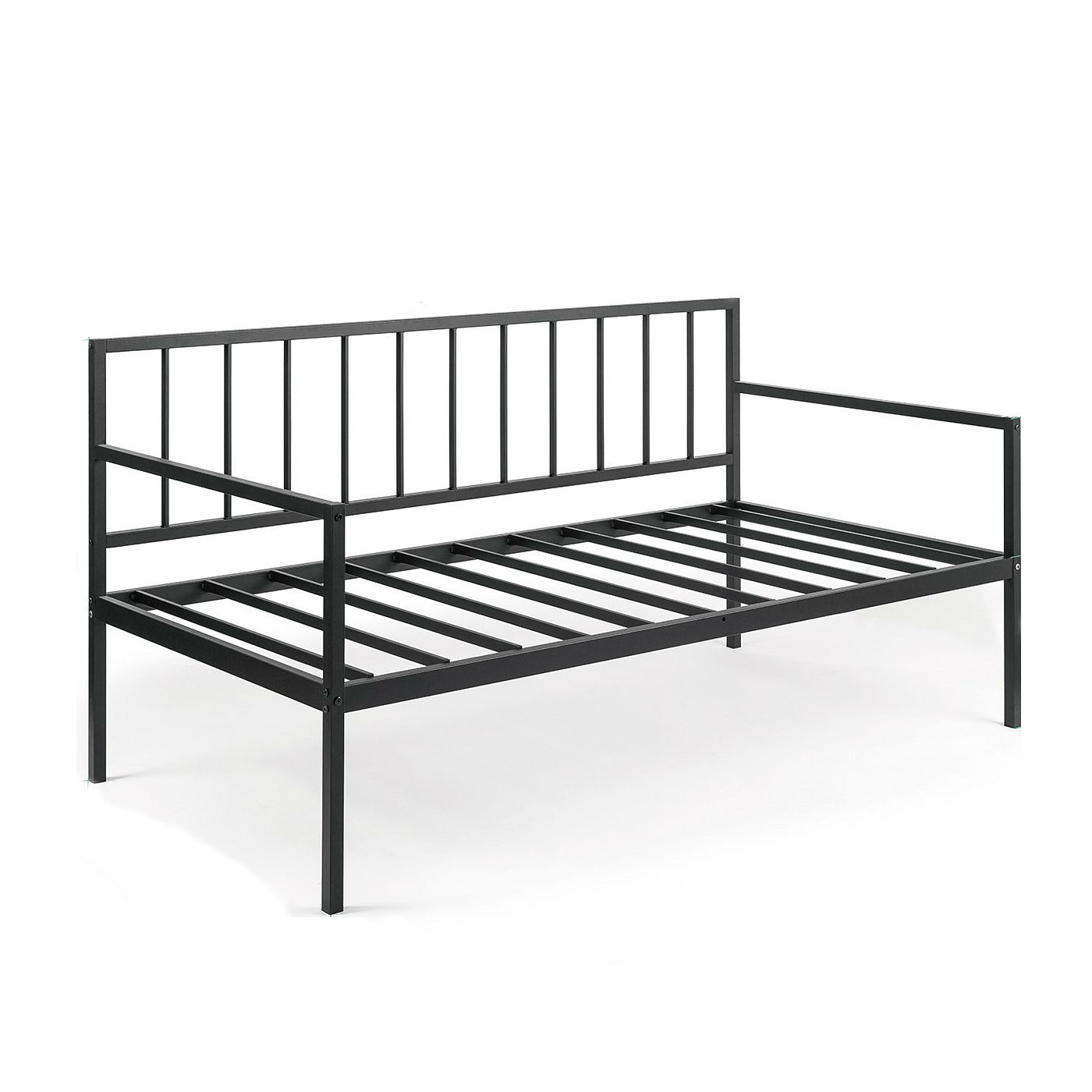 • Twin Modern Black Metal Daybed Frame with Steel Slats