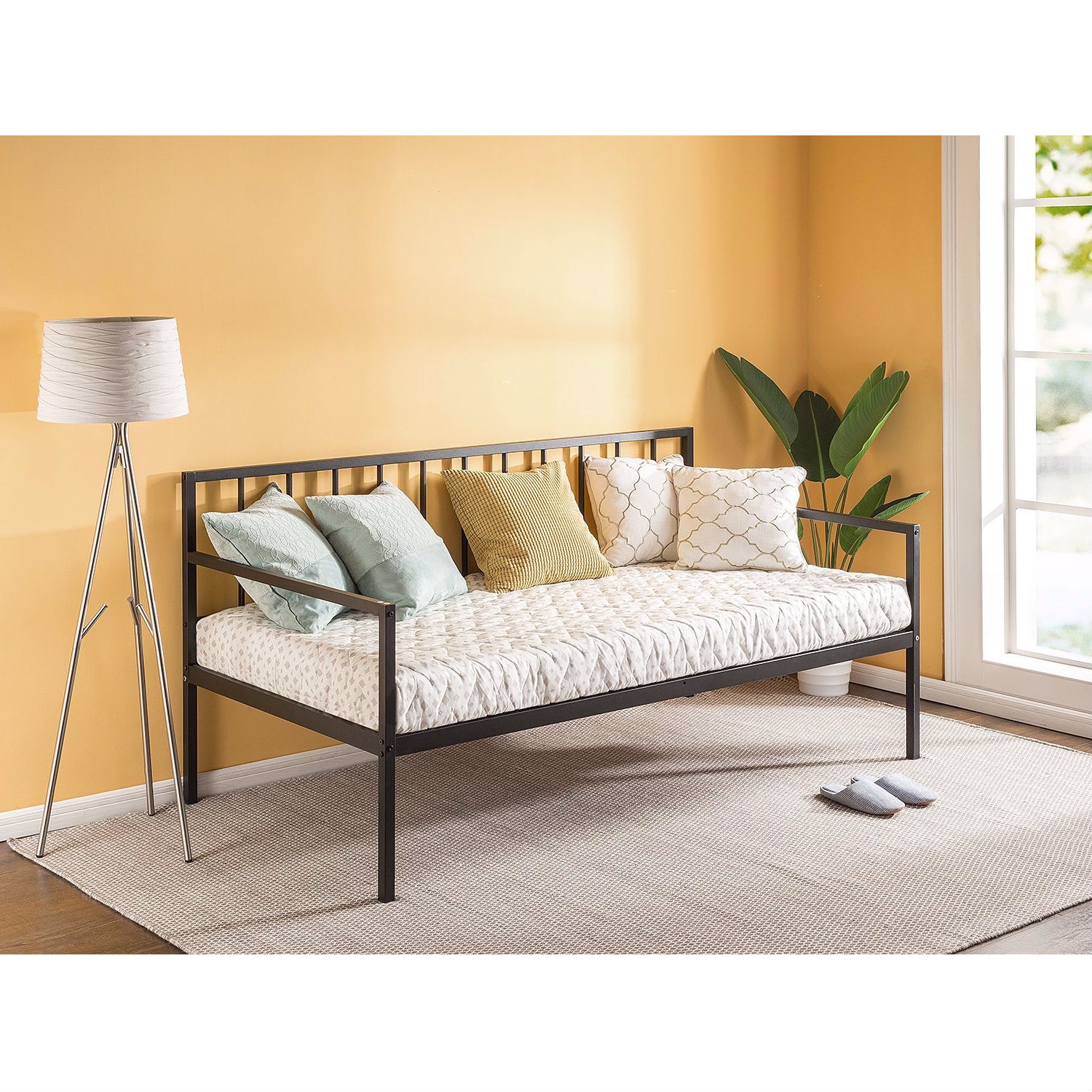 Enjoy extra sleeping space and additional seating with this Twin Modern Black Metal Daybed Frame with Steel Slats. The stylish metal frame will complement any décor and is made from premium steel for the best support. Ideal for extra sleeping space at night and additional seating during the day. Fits a standard Twin mattress (not included).
