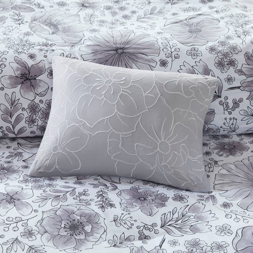 Twin size, 6-piece, White Grey, Floral Pattern, Microfiber, Comforter Set