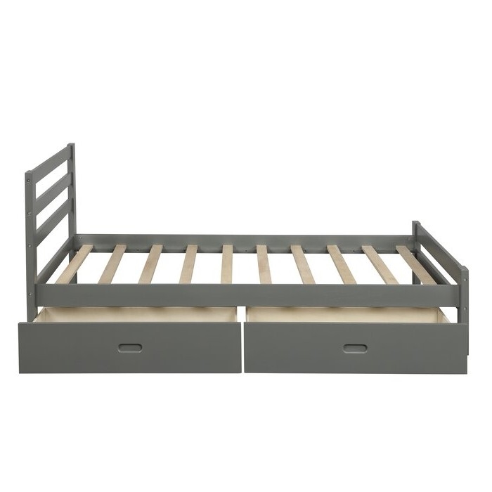 Twin size Gray Low Profile 2 Drawer Storage Platform Bed