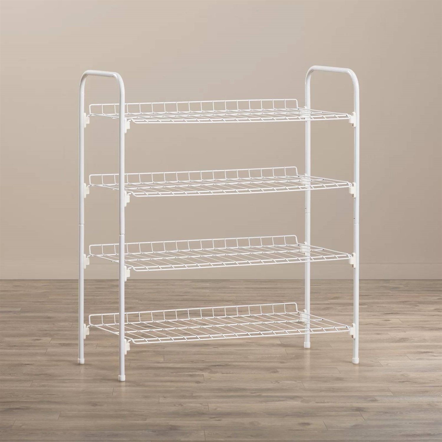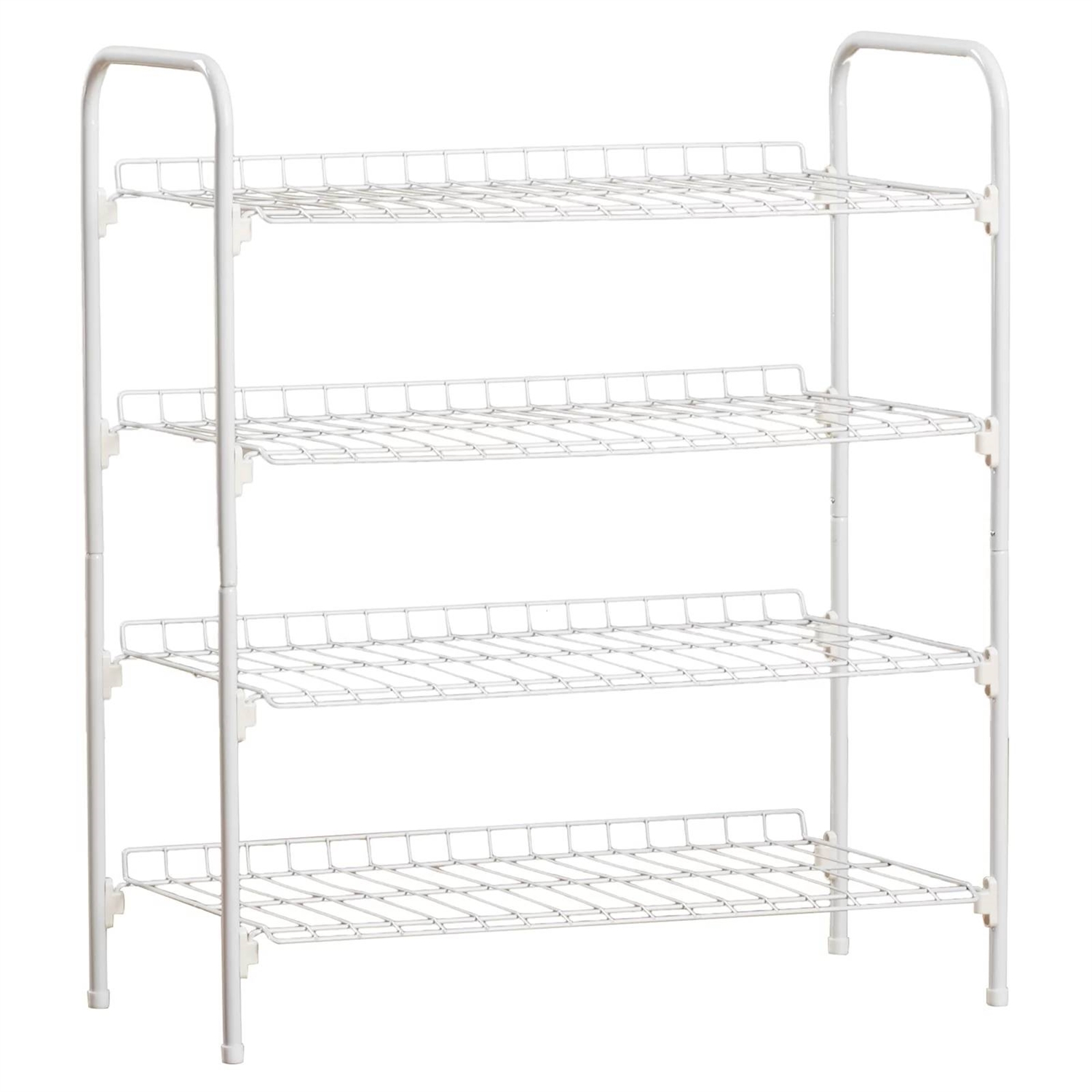 - White Metal 4-Shelf Shoe Rack – Holds up to 9 Pair of Shoes