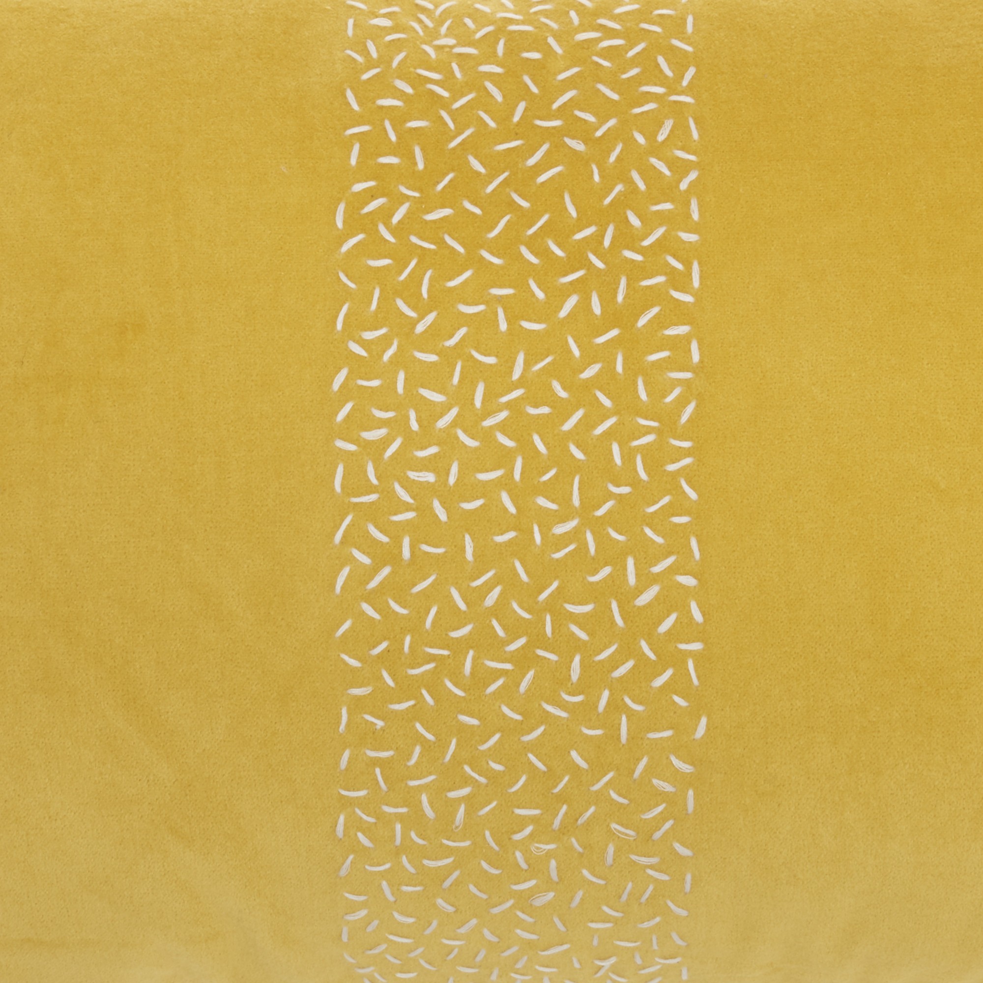This Yellow Lumbar Pillow with Center Pattern is the perfect mix of comfort and design and will invoke a sense of whimsy in any space of your home. This rectangular shaped lumbar pillow is covered with a soft and luxurious yellow fabric. The minimal background is elevated by the center stripe with has a small dash design in a white color. This lumbar pillow will help make any couch or chair more comfortable for you to sit on and add a touch of minimal design as well. 5″ H x 12″ W x 20″ D